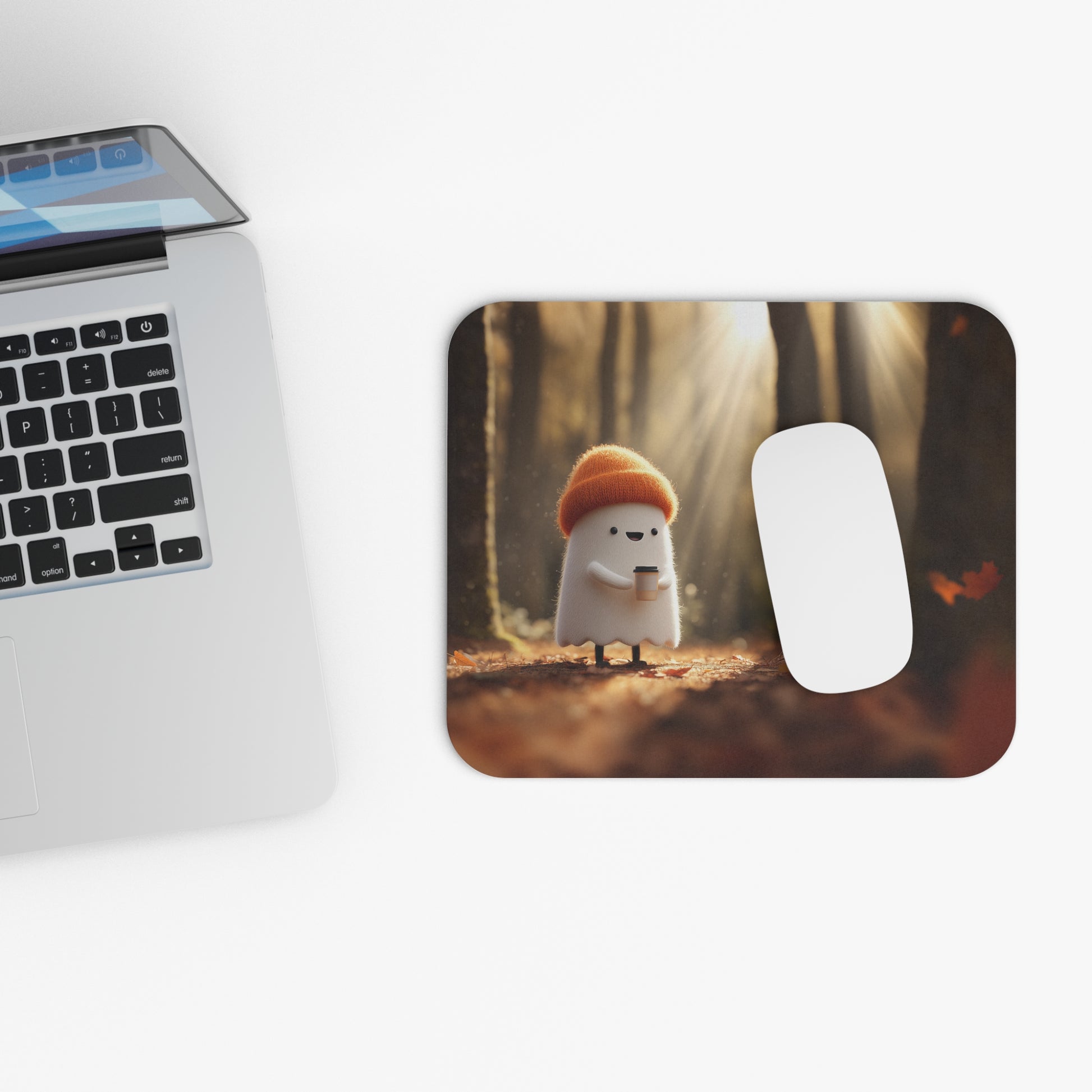 Whimsical Ghost Mouse Pad, Cute Desk Decor, Halloween Gift, Cozy Office Accessories, Nature-inspired Mousepad, Ghost Character Design